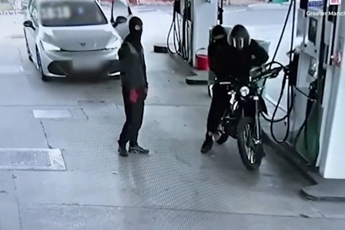ஸ்டாக்போர்ட்டின் ஆஃபெர்டன் பகுதியில் உள்ள ஒரு பெட்ரோல் நிலையத்தில், முகமூடி அணிந்த மூன்று இளைஞர்கள், திருடப்பட்டதாக சந்தேகிக்கப்படும் மோட்டார் சைக்கிளில் வந்தனர். அப்பகுதியில் மாறுவேடத்தில் ரோந்து பணியில் இருந்த இரண்டு பெண் காவலர்கள், அவர்களை பின்தொடர்ந்து, ஒரு சமயத்தில் துணிச்சலாக அணுகி, மூன்று பேரில் ஒருவரை மடக்கிப் பிடித்தனர்.