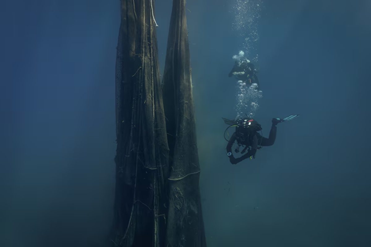 - ‘ஏஜியன் ரீபிரீத்’ (Aegean Rebreath) என்ற சுற்றுச்சூழல் குழுவின் நீர்மூழ்கியாளர்கள், தங்கள் உயிரைப் பணயம் வைத்து, ஆழ்கடலுக்குள் சென்று, கயிறுகள் மற்றும் காற்று நிரப்பப்பட்ட பைகளை இணைத்து இந்த வலைகளை வெளியே கொண்டு வருகின்றனர்.