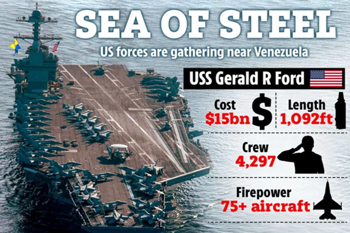 அமெரிக்க அதிபர் டிரம்ப் கரீபியன் கடற்பகுதியில் தற்போது வரை, சுமார் 10,000 படைகளையும், அமெரிக்கக் கடற்படையின் மரைன் படை வீரர்களையும், குறைந்தது 10 போர்க்கப்பல்களையும் குவித்து வைத்துள்ளார்.