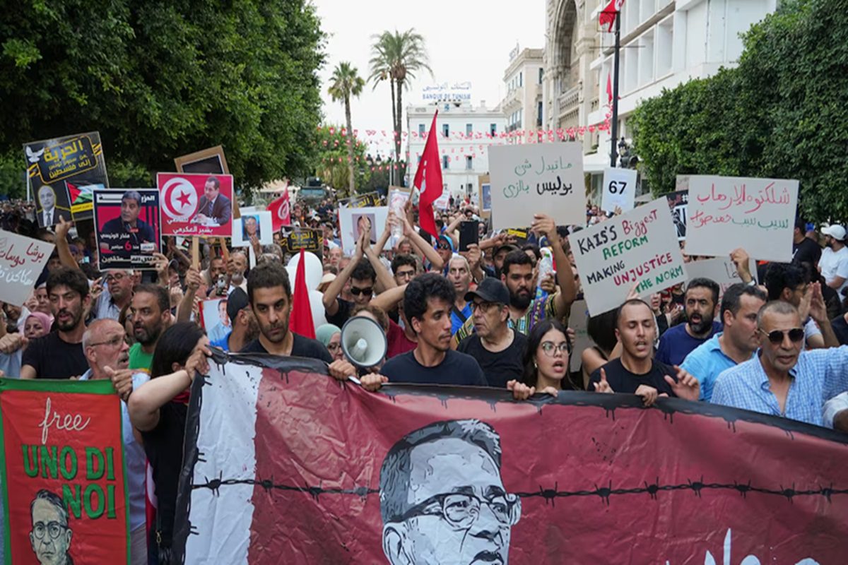 தூனிசிய அதிபர் கைஸ் சையதுக்கு எதிராக நூற்றுக்கணக்கான ஆர்வலர்கள் தலைநகர் துனிஸில் நேற்று முன்தினம்  போராட்டத்தில் ஈடுபட்டனர். அதிபர் சையதின் கடந்த நான்கு ஆண்டுகால ஆட்சியை “சர்வாதிகார ஆட்சி” என்று அவர்கள் கடுமையாக விமர்சித்ததோடு, தூனிசியா ஒரு “திறந்தவெளி சிறையாக” மாறிவிட்டதாகவும் தெரிவித்தனர்.